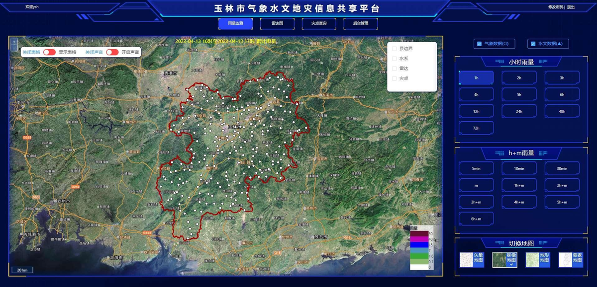 广西玉林地质灾害智慧气象专业服务平台是基于自然资源、水文、气象等部门的数据支撑,通过部署在玉林市大数据发展和政务服务局的政务云,实现数据的实时获取,设计建设雨量实时监测服务网与雨量实时监测APP平台。